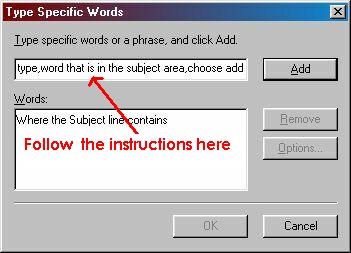 Repeat the operation, till you have added different words, that the spam e-mail has in it's Subject area. Choose OK.